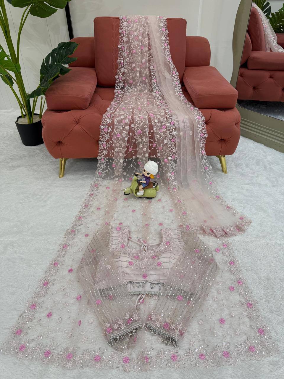 Work: Intricate Thread Embroidery & Sequence Work with Fancy Lace