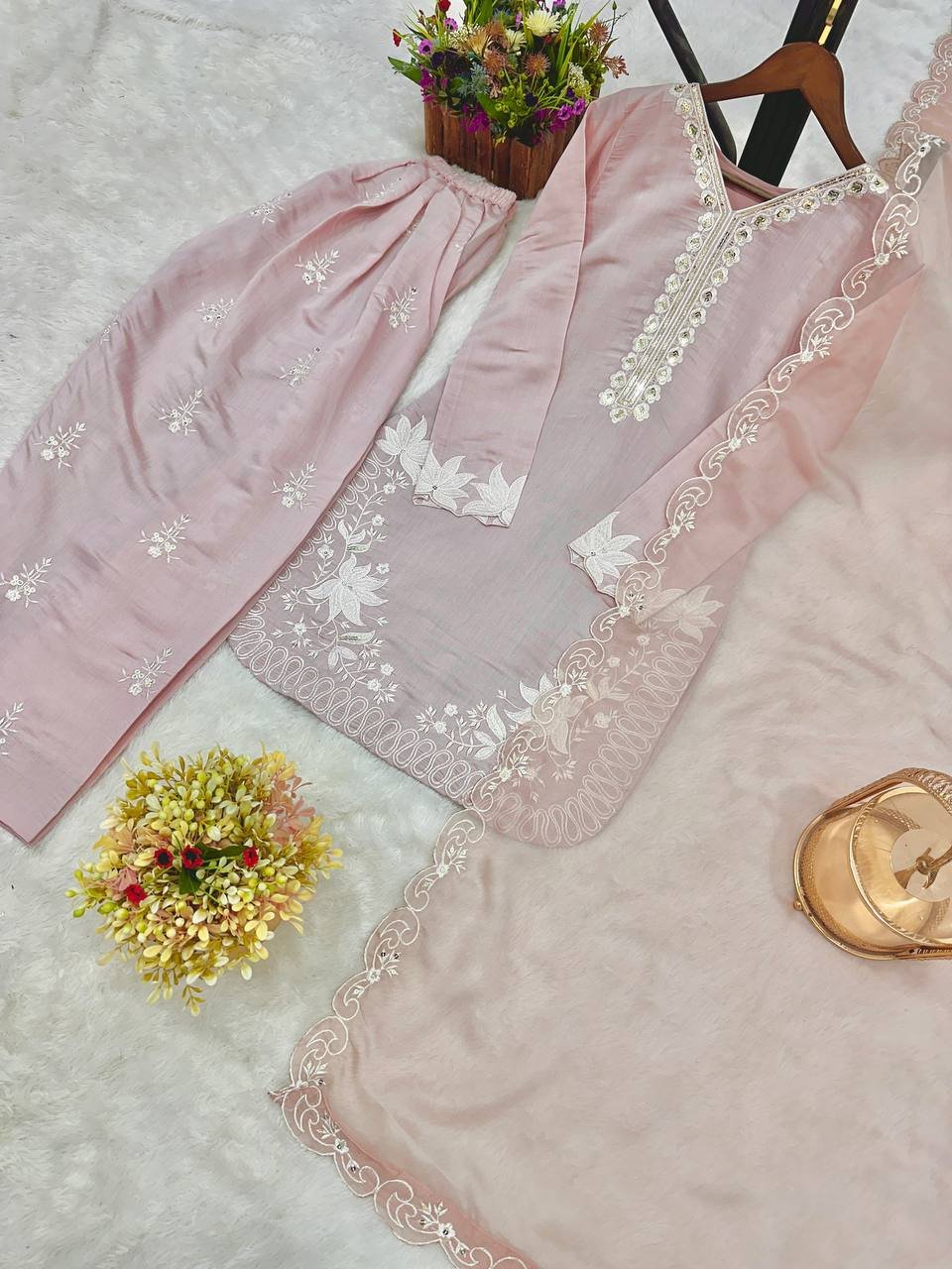 Fabric: Pure Roman Silk with Embroidery Thread and Sequence Work, Full Sleeves