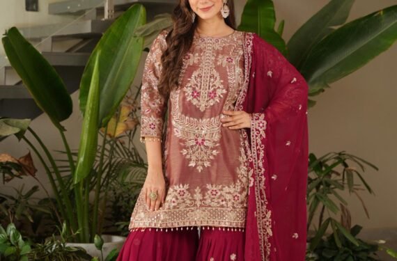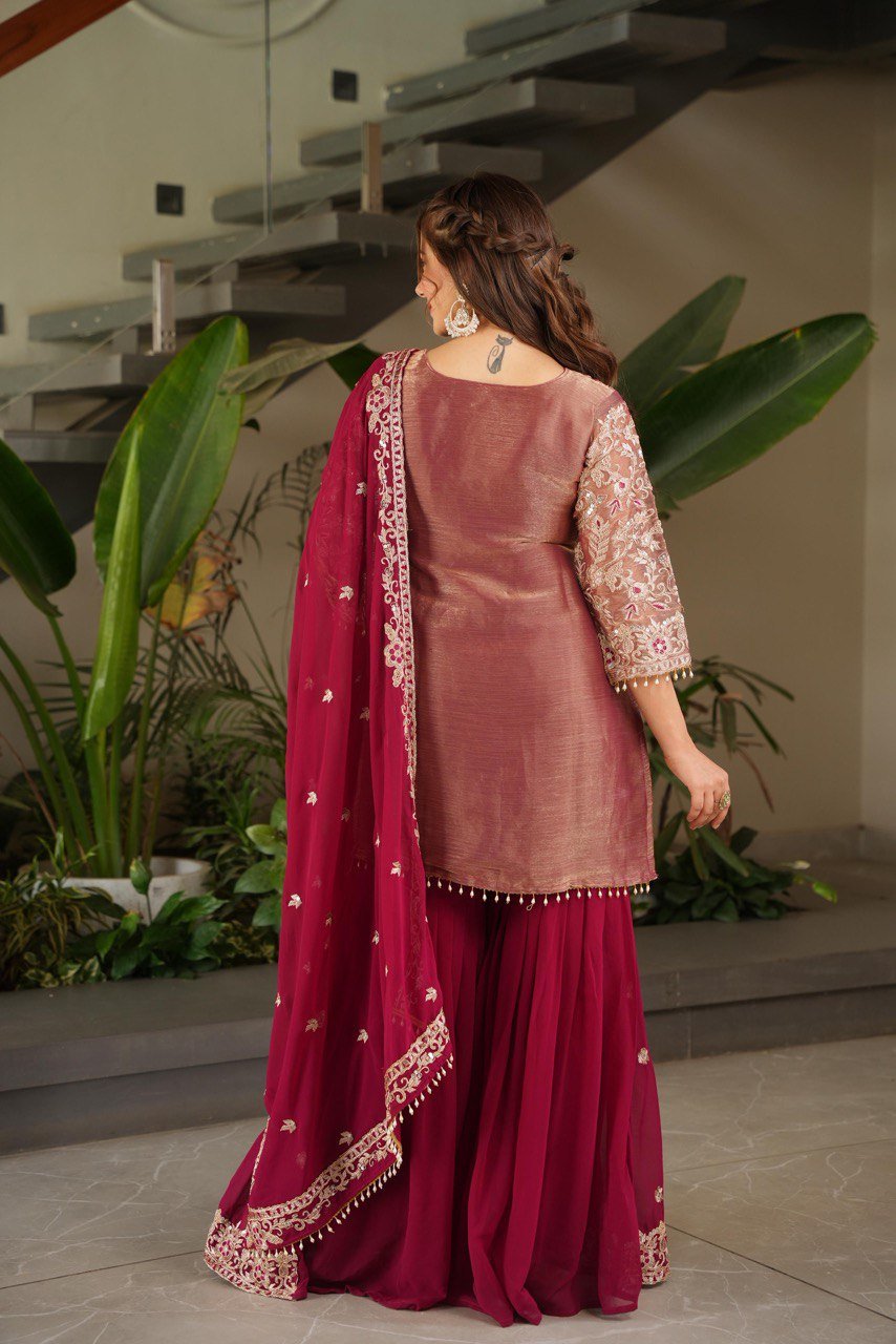 Be the first to review “Beautiful Maroon Silk Coding & Sequins Embroidered Kurta with Palazzo & Dupatta”