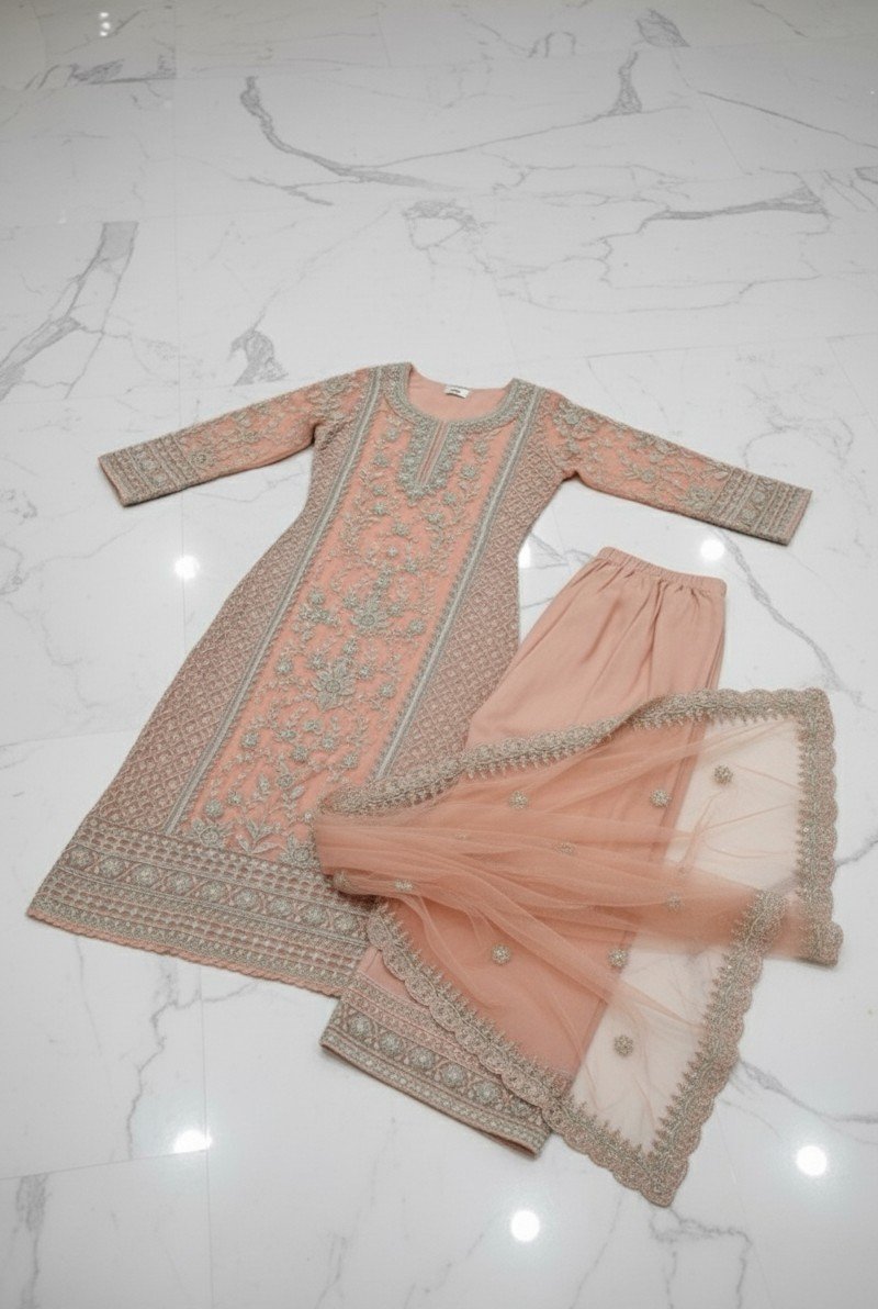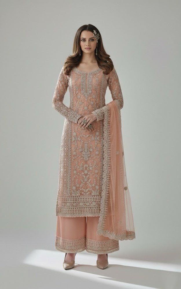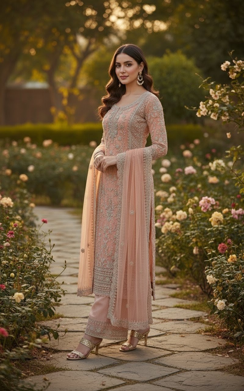Beautiful Net Pakistani Suit with Mirror Embroidery Work for Functions