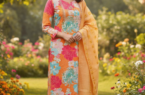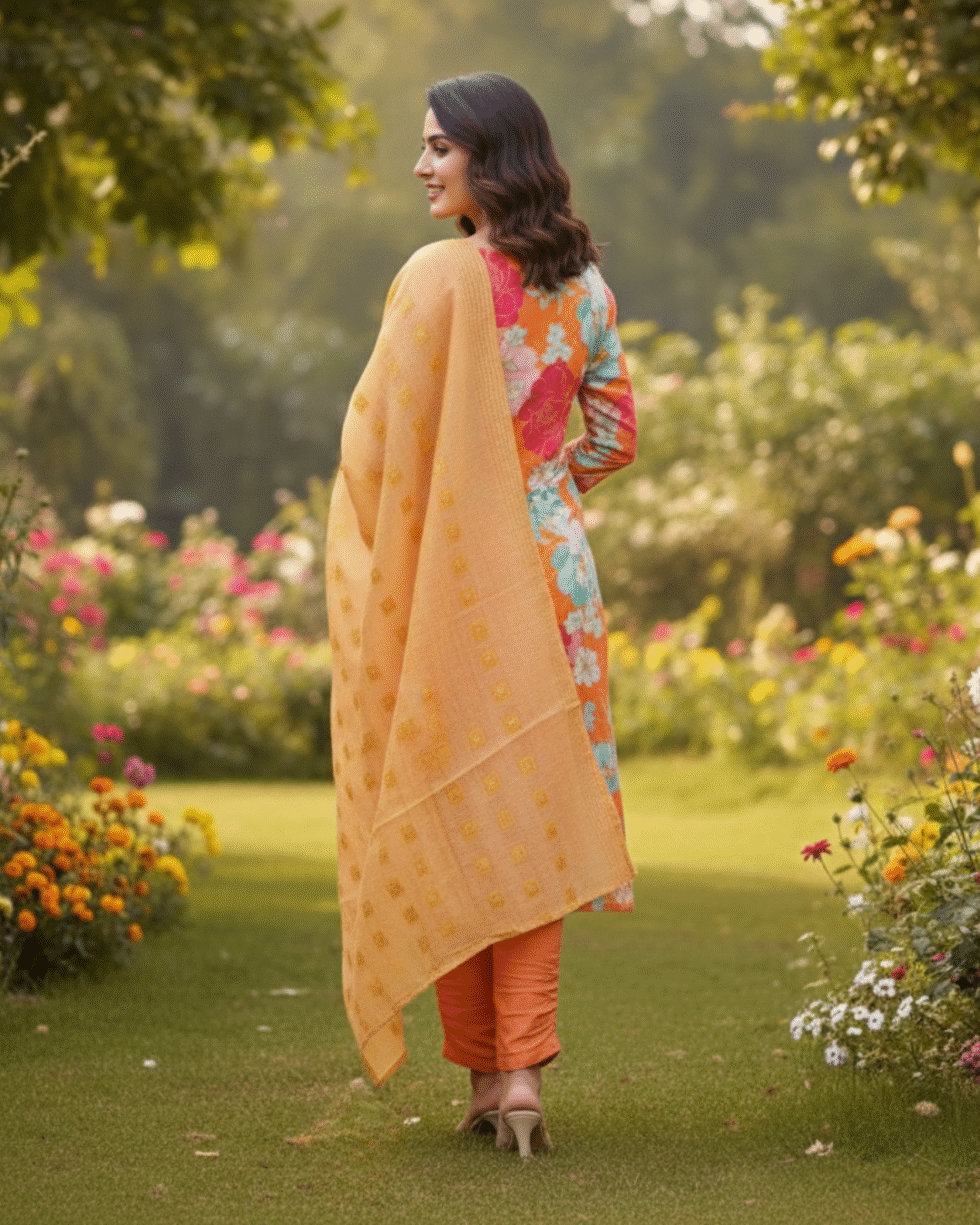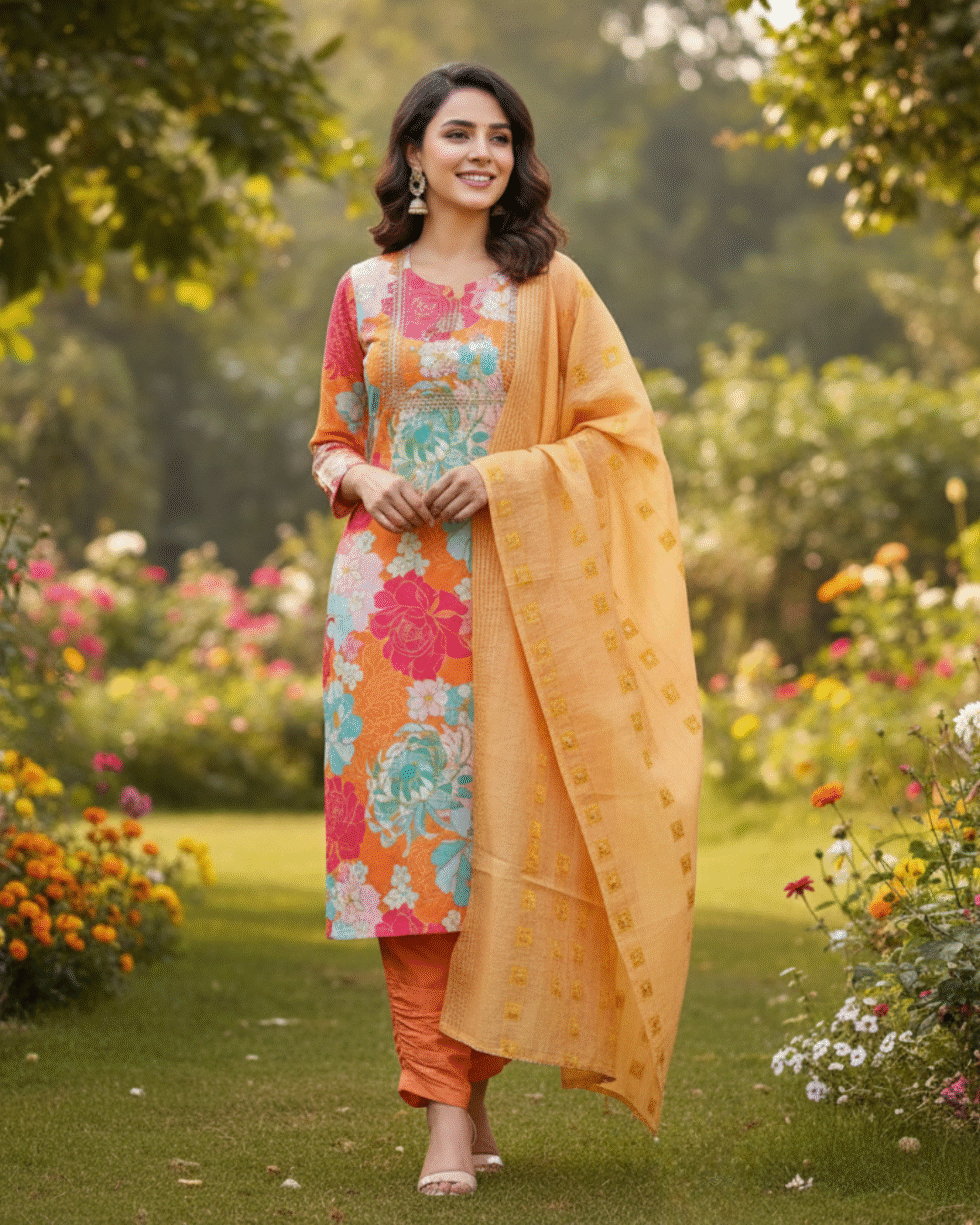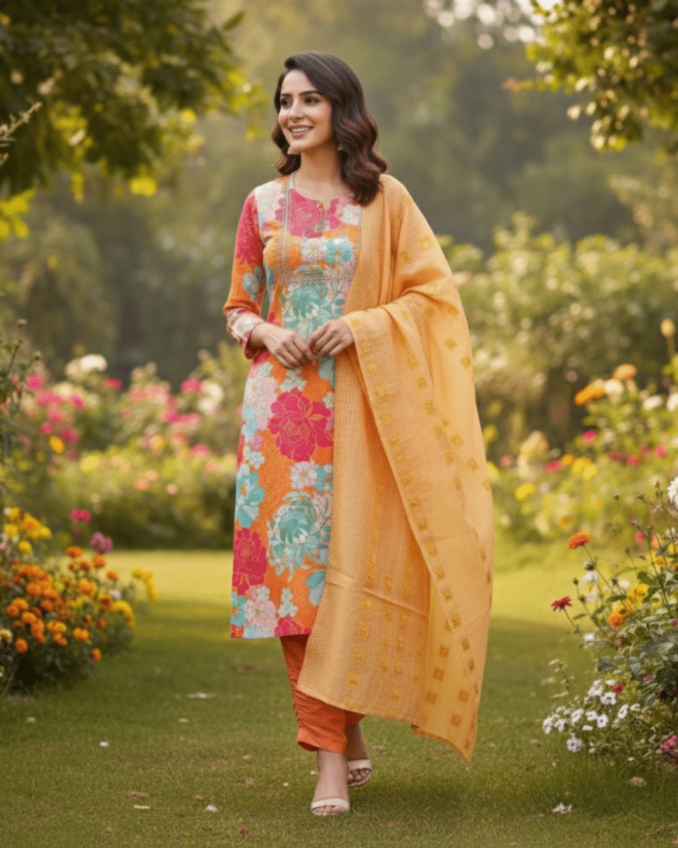 Be the first to review “Beautiful Orange Cotton Printed & Embroidered Kurta Set”