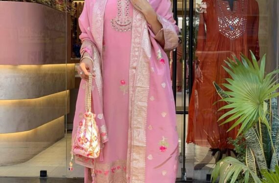 Be the first to review “Beautiful Pink Jacquard Embroidered Kurta Set with Floral Embroidery Dupatta”