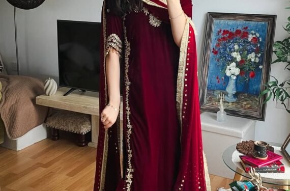 Be the first to review “Cherry Red Noor Velvet Embroidered Suit”