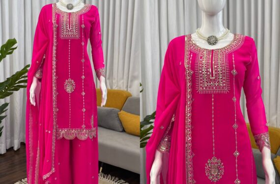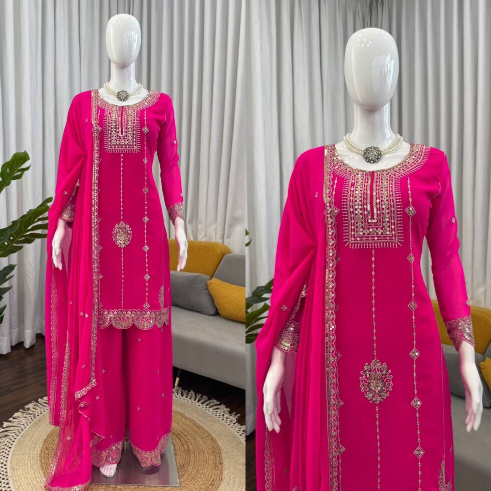 Be the first to review “Classy Rani Pink Georgette Embroidered Kurta Palazzo set”