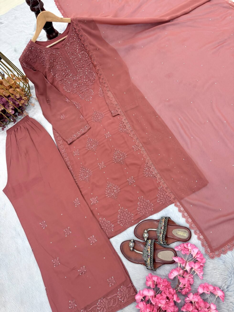 Fabric: Heavy Faux Georgette with Embroidery Work and Diamond Handwork, with Sleeves