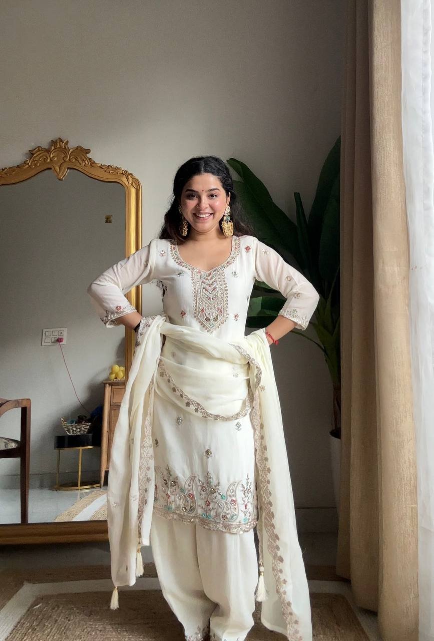 Designer Off White Beads & Sequins Embroidery Suit With Salwar