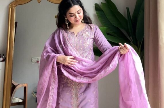 Be the first to review “Elegant Lavender Roman Silk Embroidered Sequin Work Suit”