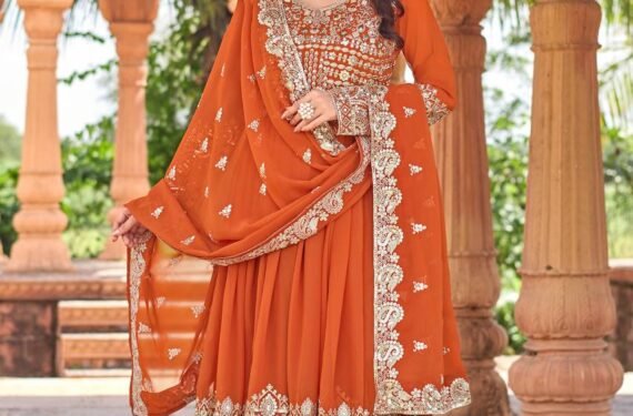 Be the first to review “Elegant Orange Georgette Embroidered Sequin Detailing Anarkali Set”