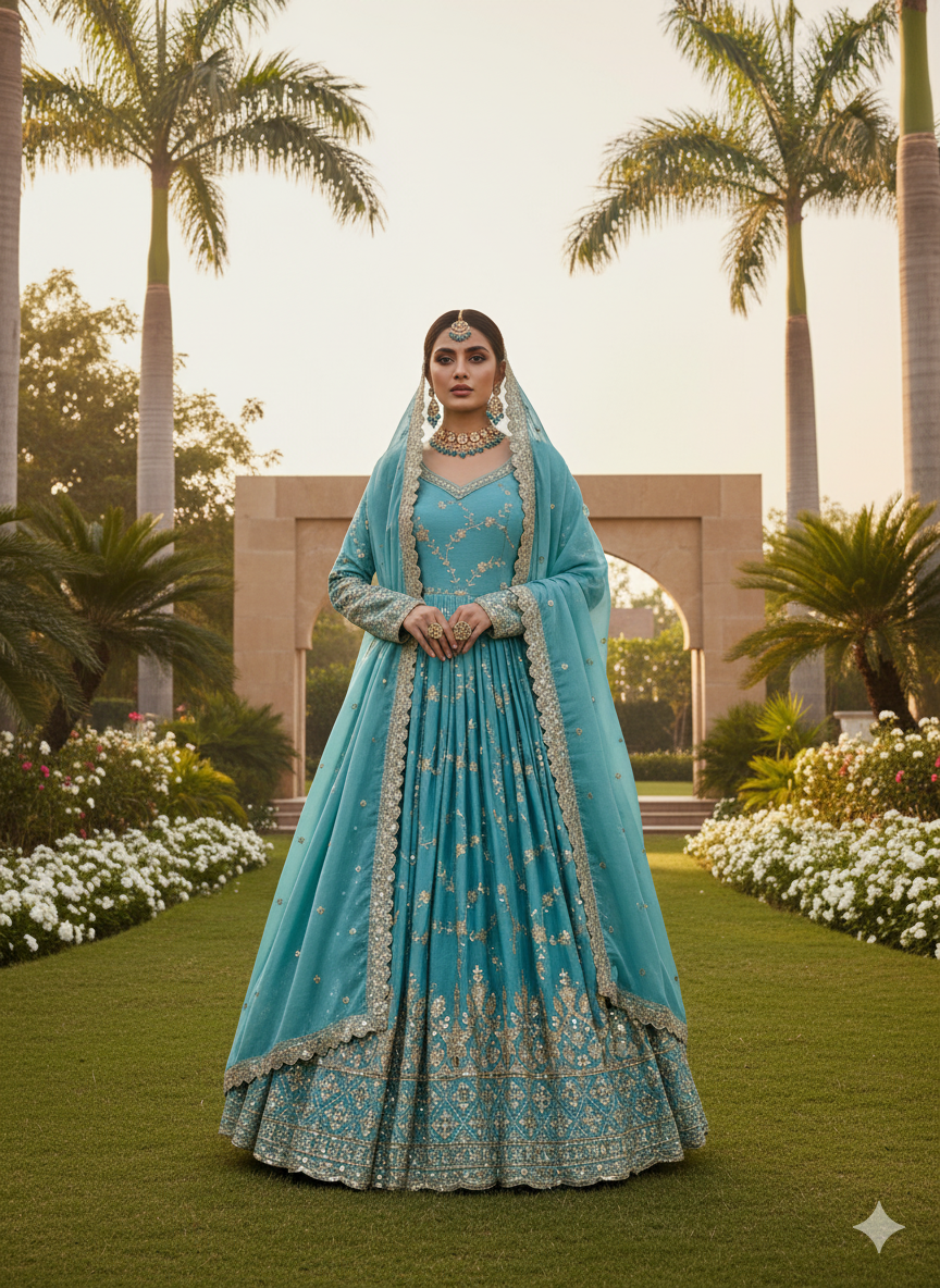 Work: Embroidery with 5mm Sequin Detailing + Mirror Work