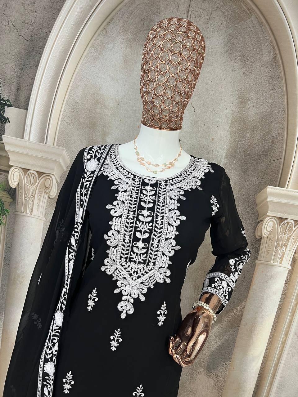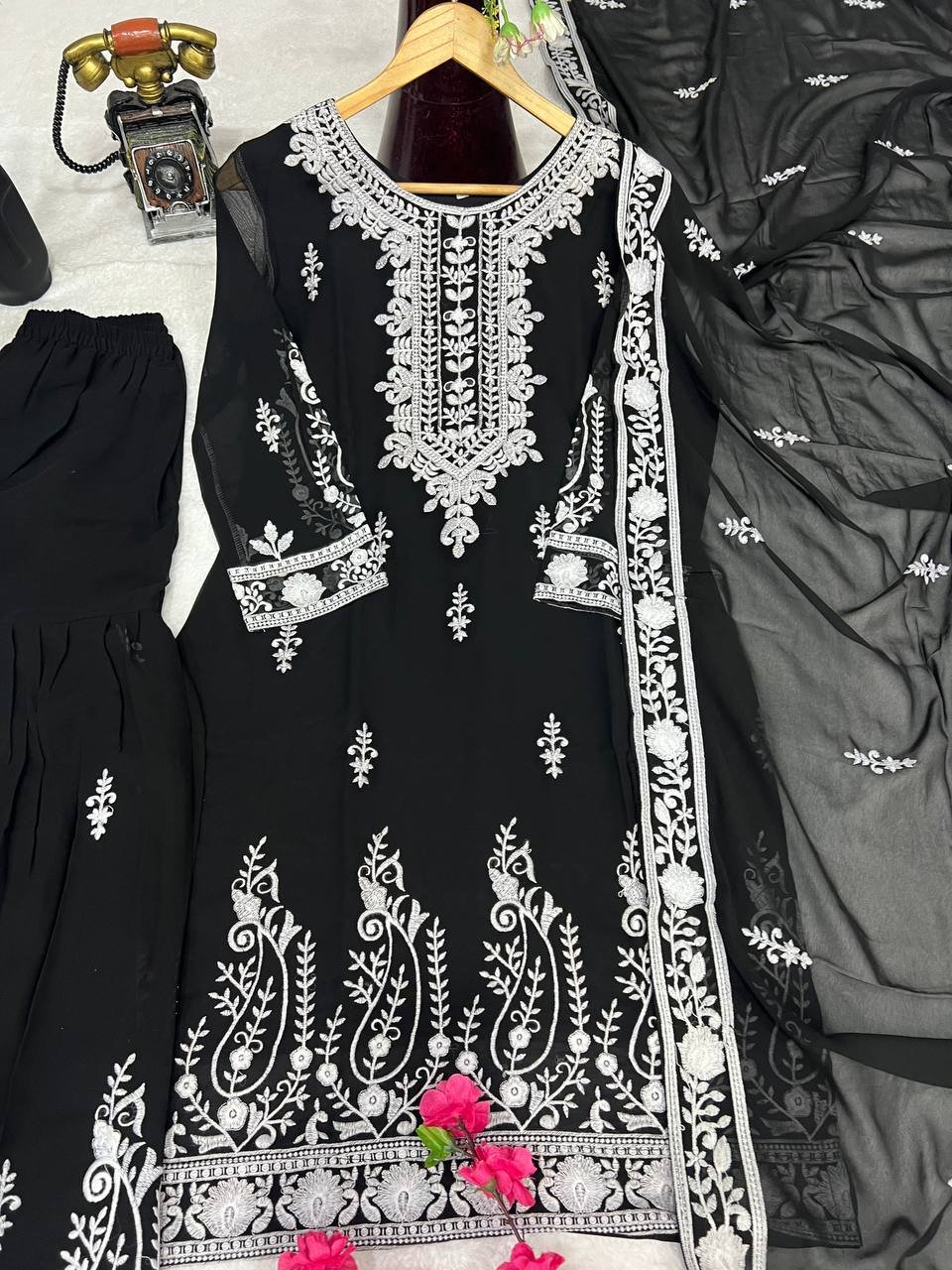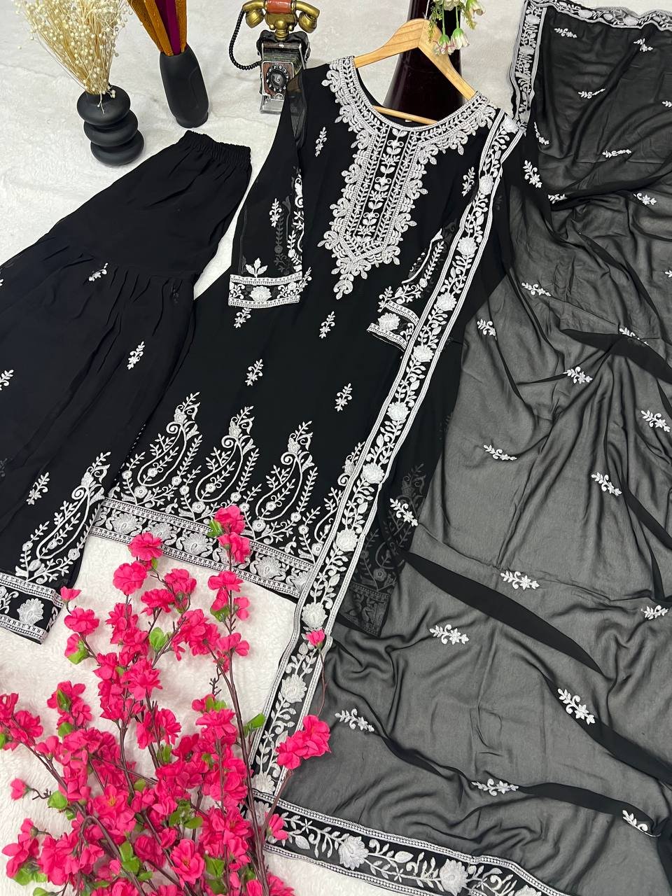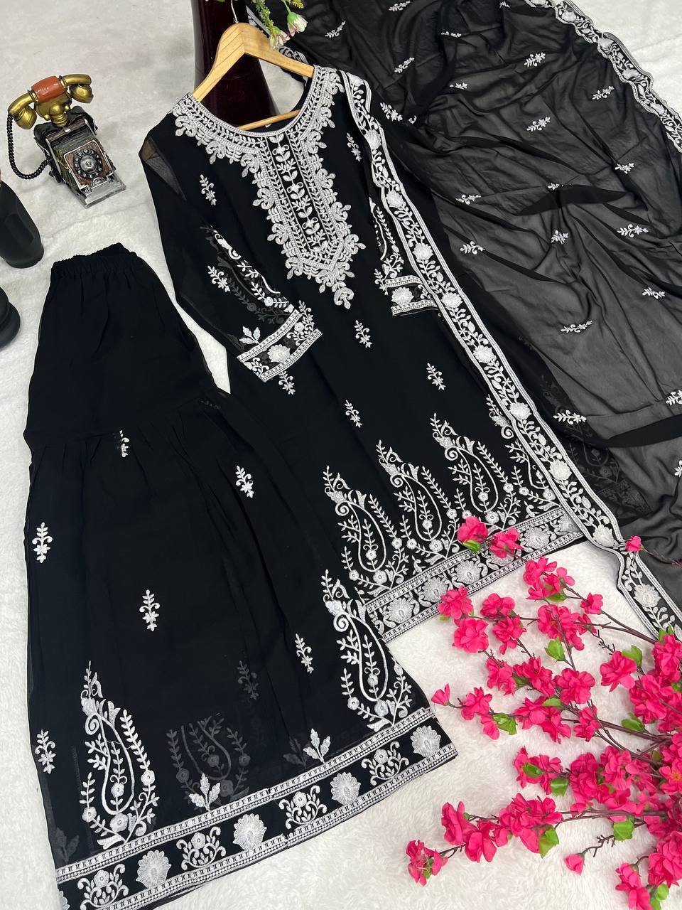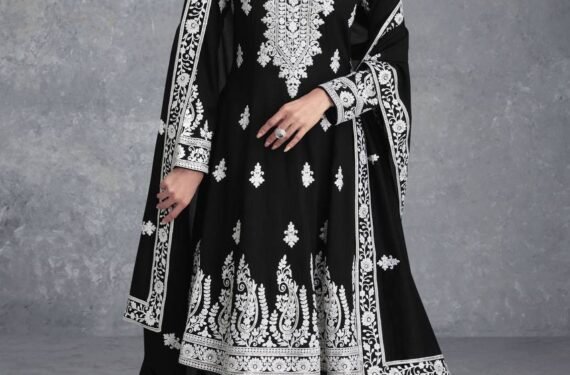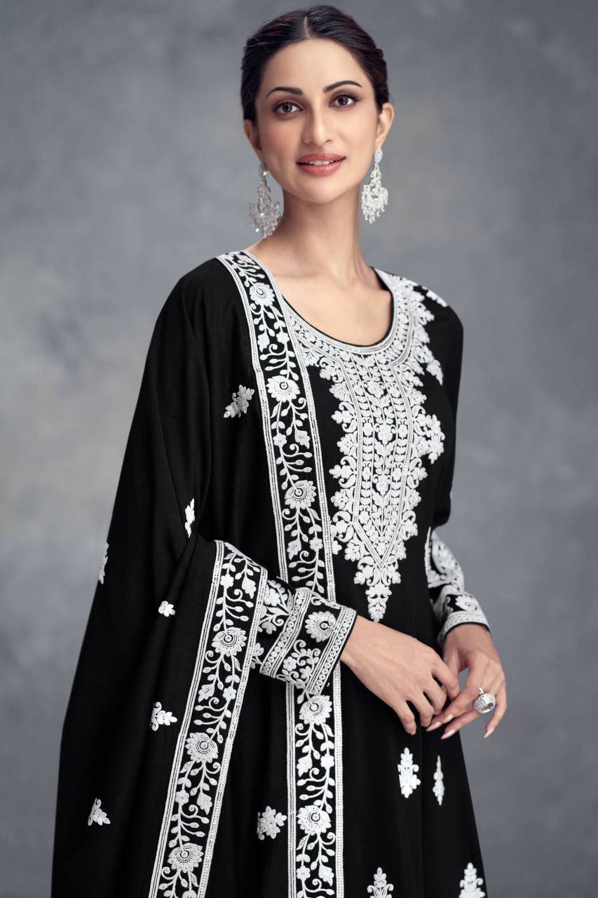 Be the first to review “Ethnic Black Georgette Multi Needle Embroidered Kurta Sharara Set”