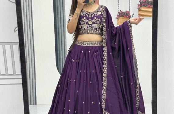 Be the first to review “Ethnic Purple Embroidery with Thread & Sequins Lehenga choli”