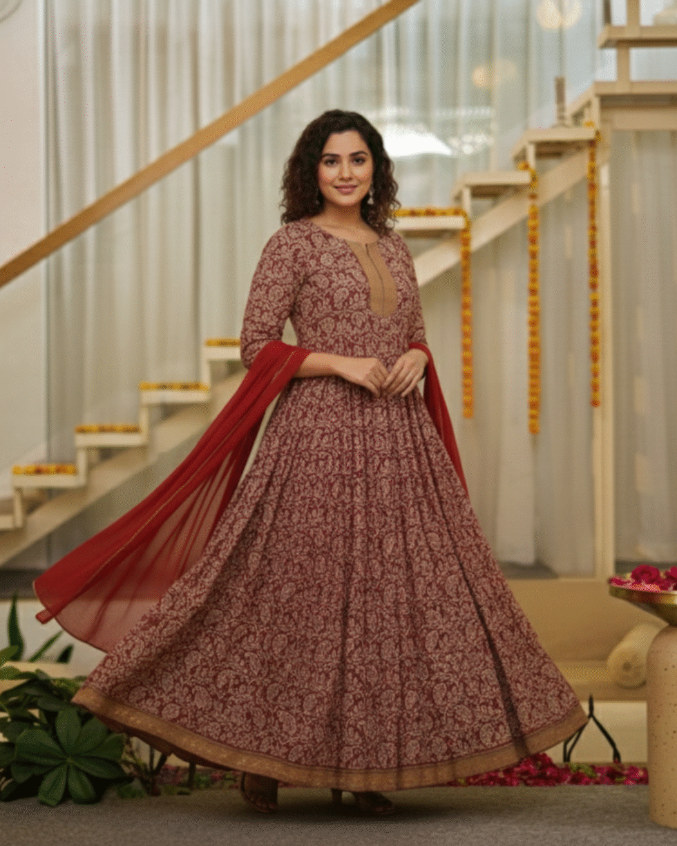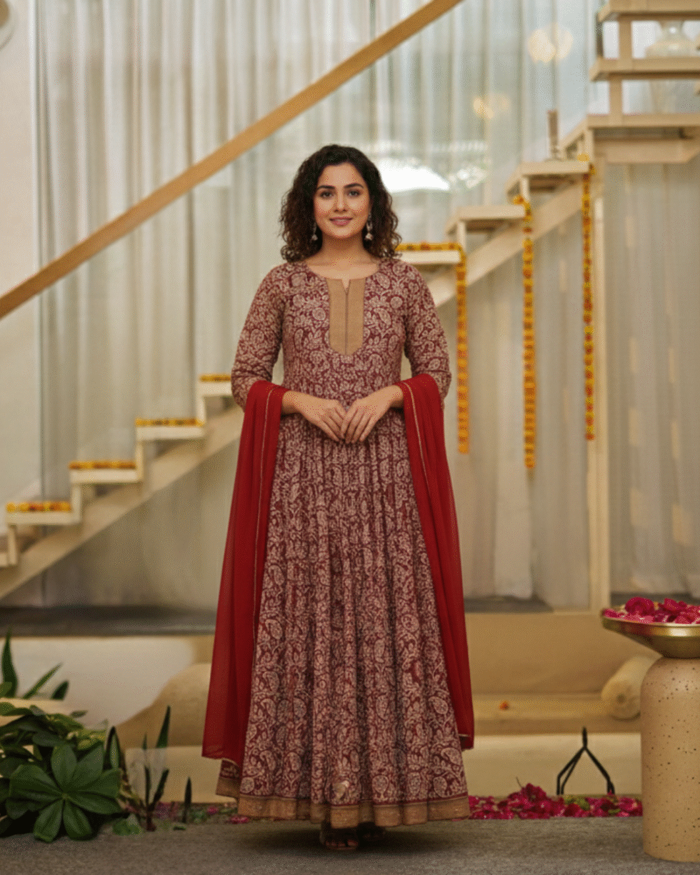 Exclusive Printed Full Length Anarkali with Beautiful Gotta Lace Work Dupatta