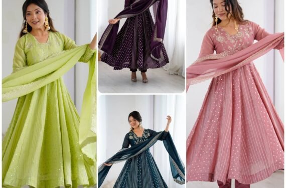 Be the first to review “Falak Embroidered Crunchy Silk Flared Anarkali Set”