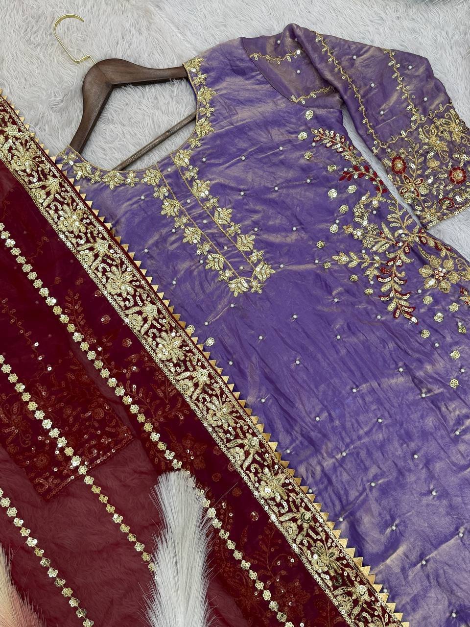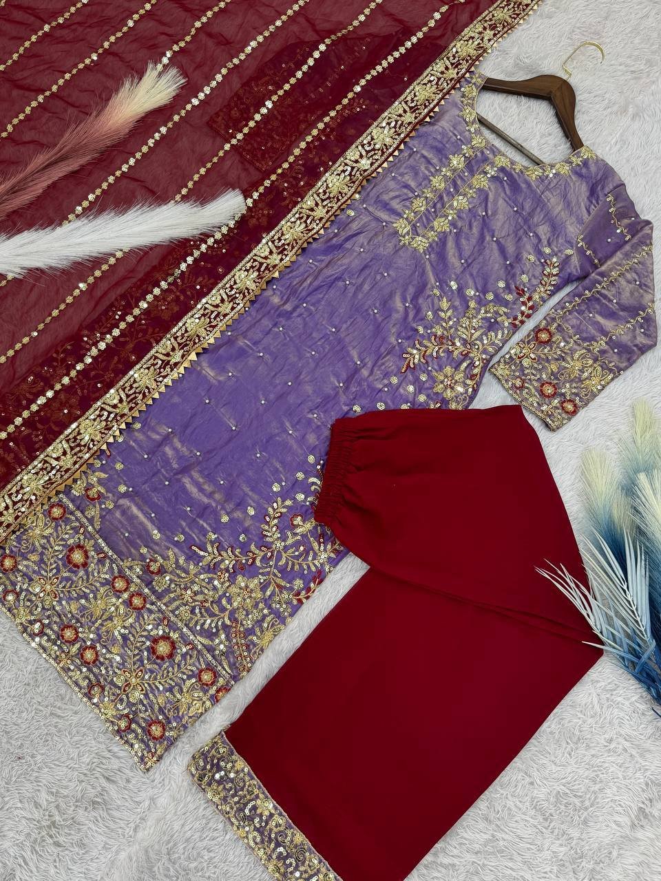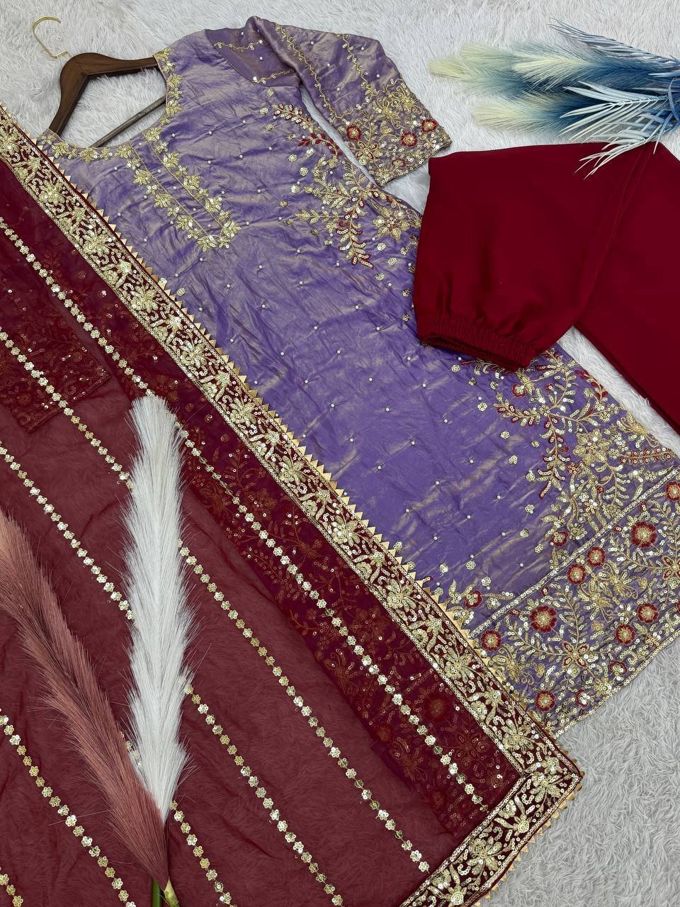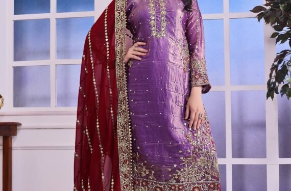 Be the first to review “Fendy Silk Purple Embroidered & Moti Work Ethnic Palazzo Set for Festivals”