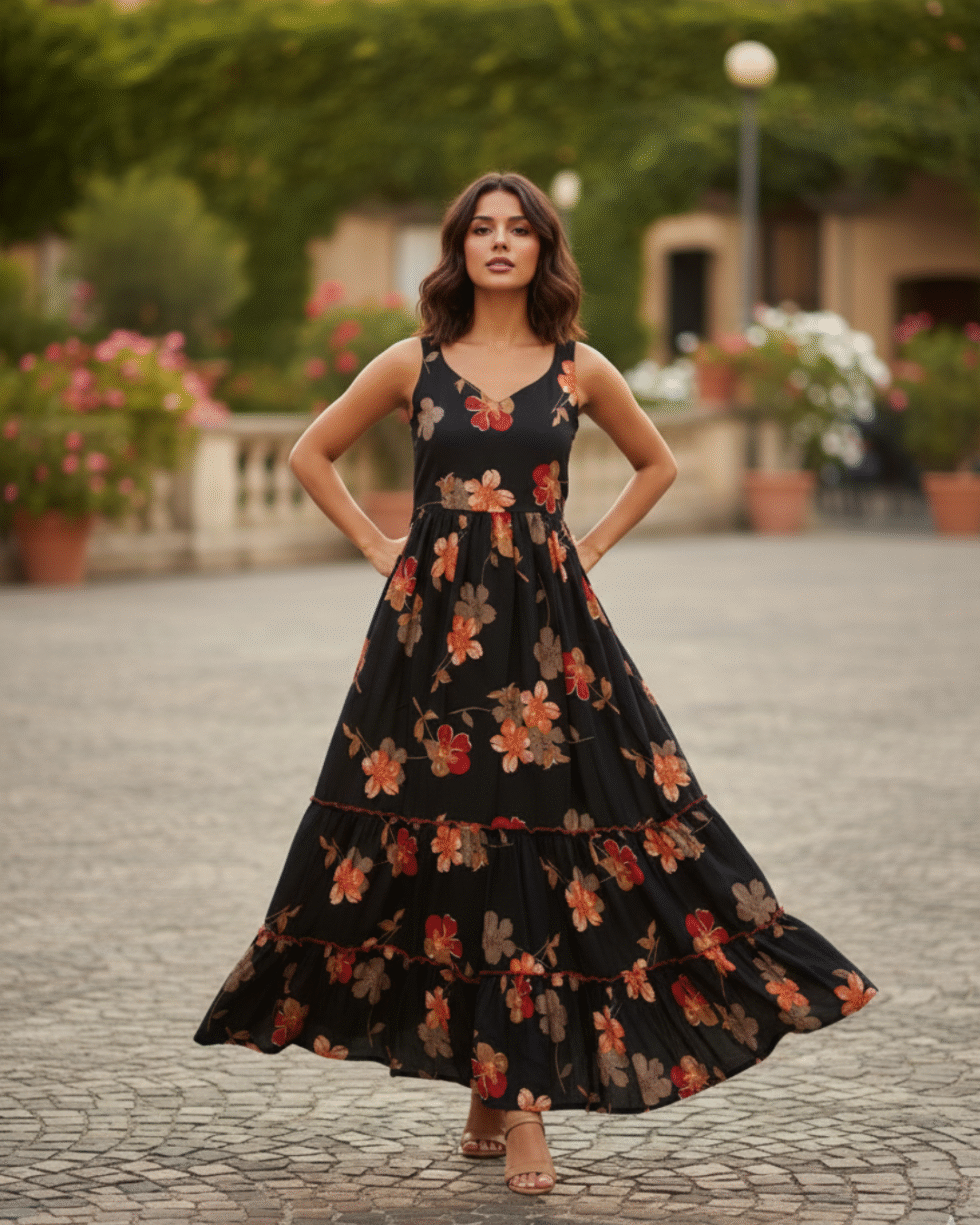 Georgette Printed Black Maxi Dress