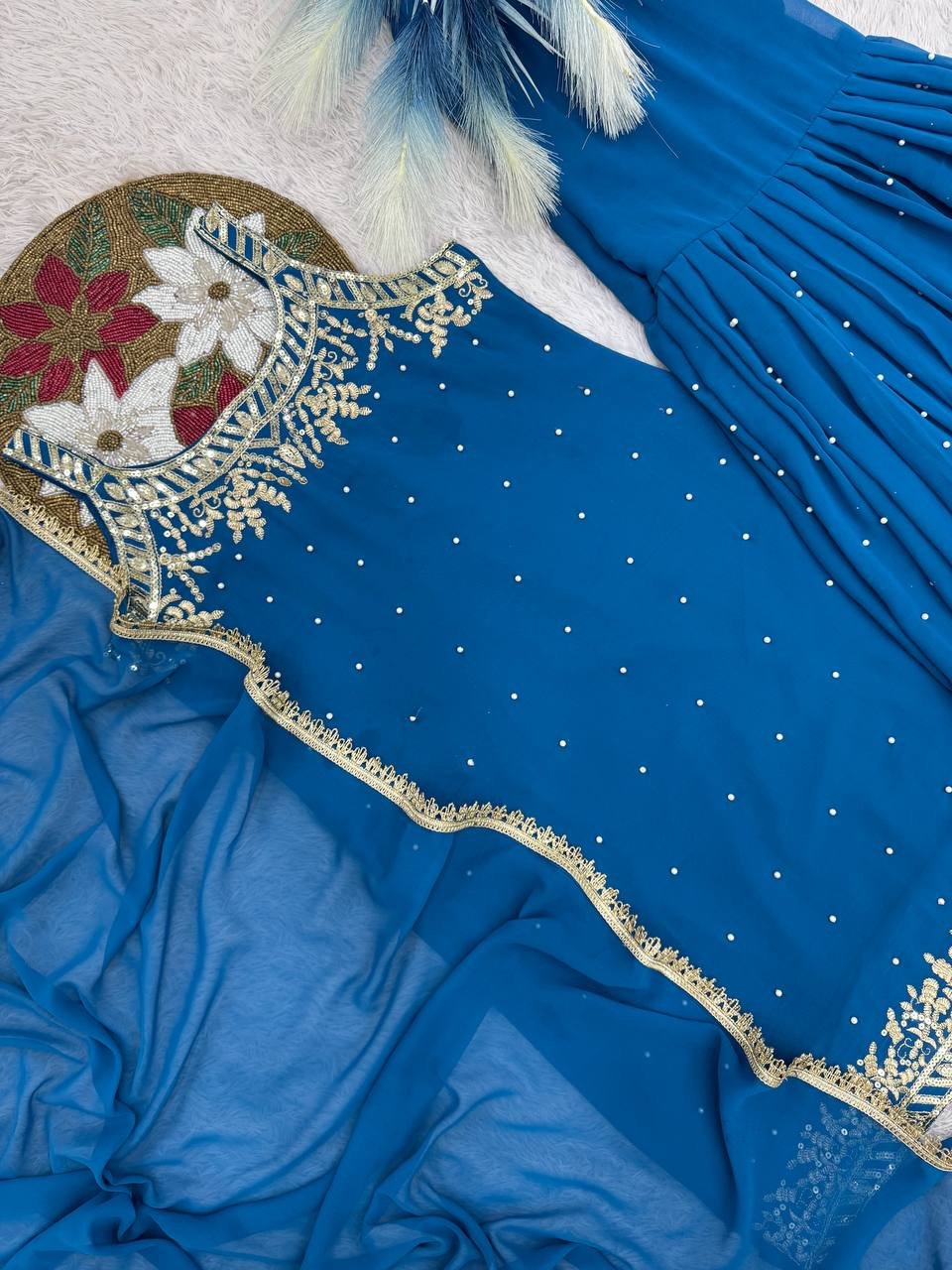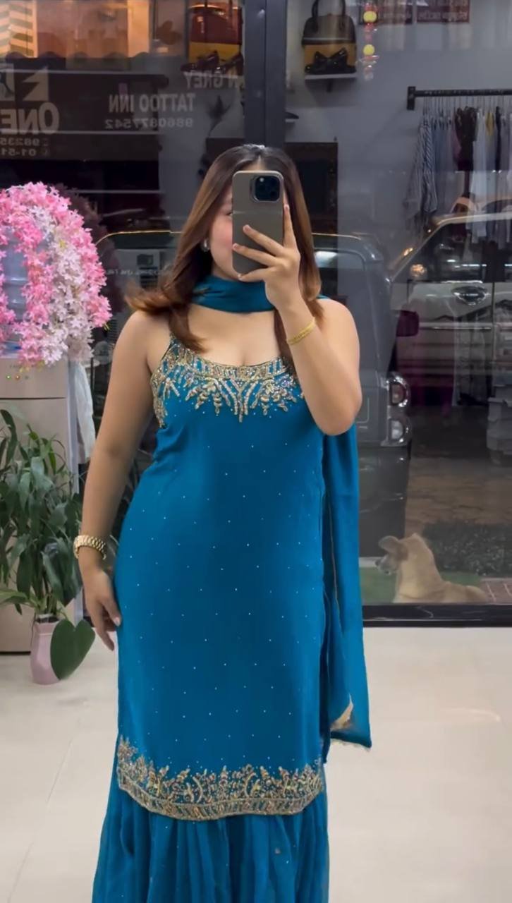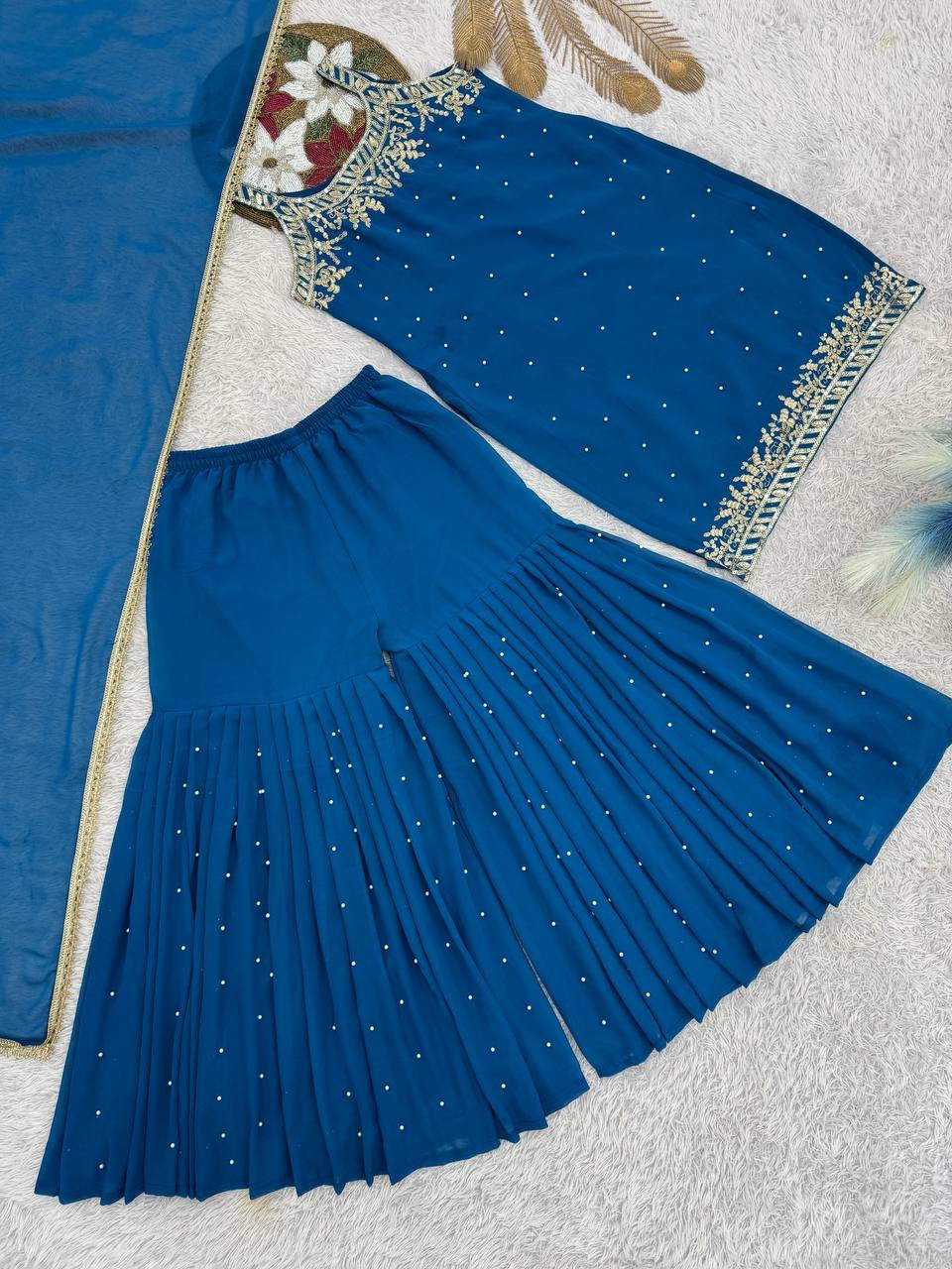 Gorgeous Blue Embroidery & Sequins with Moti DetailingSharara Set