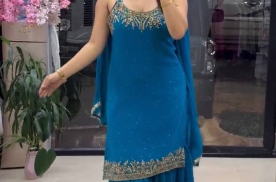 Be the first to review “Gorgeous Blue Embroidery & Sequins with Moti DetailingSharara Set”