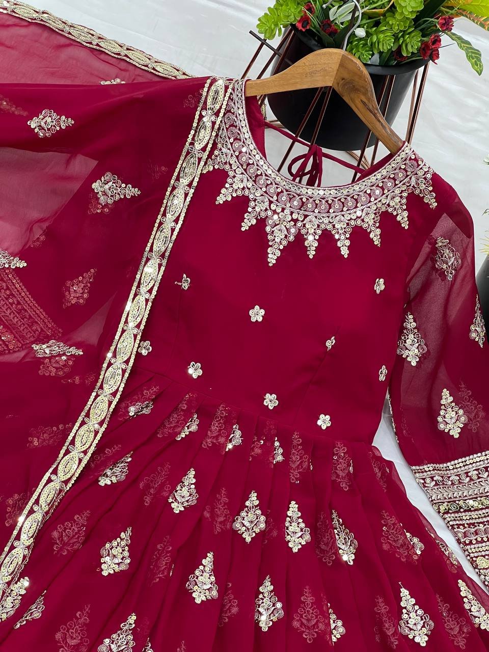 • Fabric: Faux Georgette with Full Heavy Embroidery Sequence Work