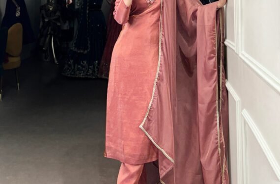 Be the first to review “Party Wear Pink Viscose Tissue Suit with Beads Embroidery & Organza Dupatta”