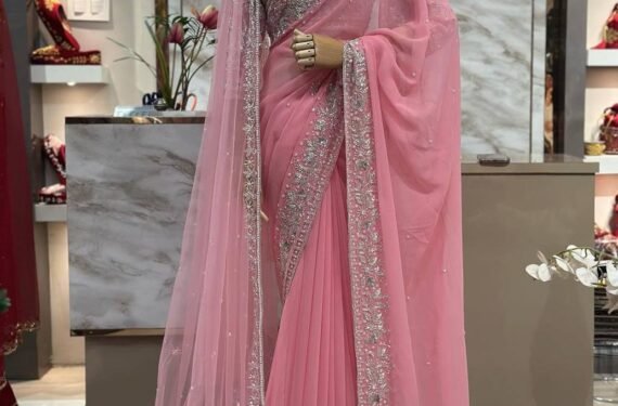 Be the first to review “Partywear Georgette Saree & Soft Net Dupatta with Embroidery & Pearl work”