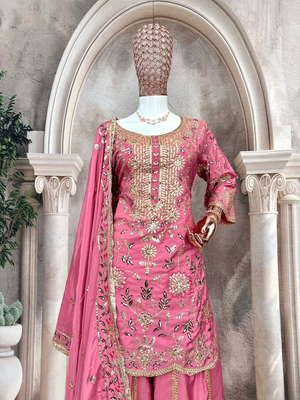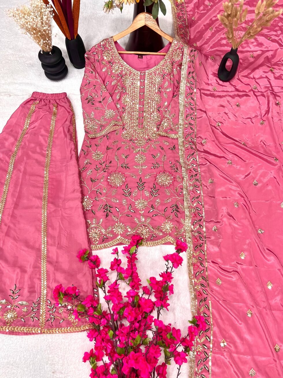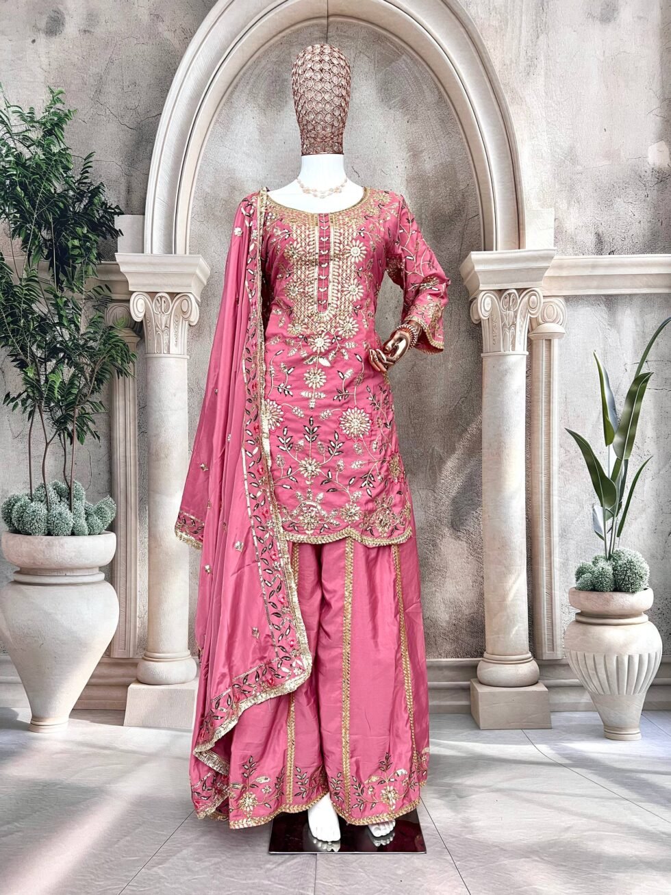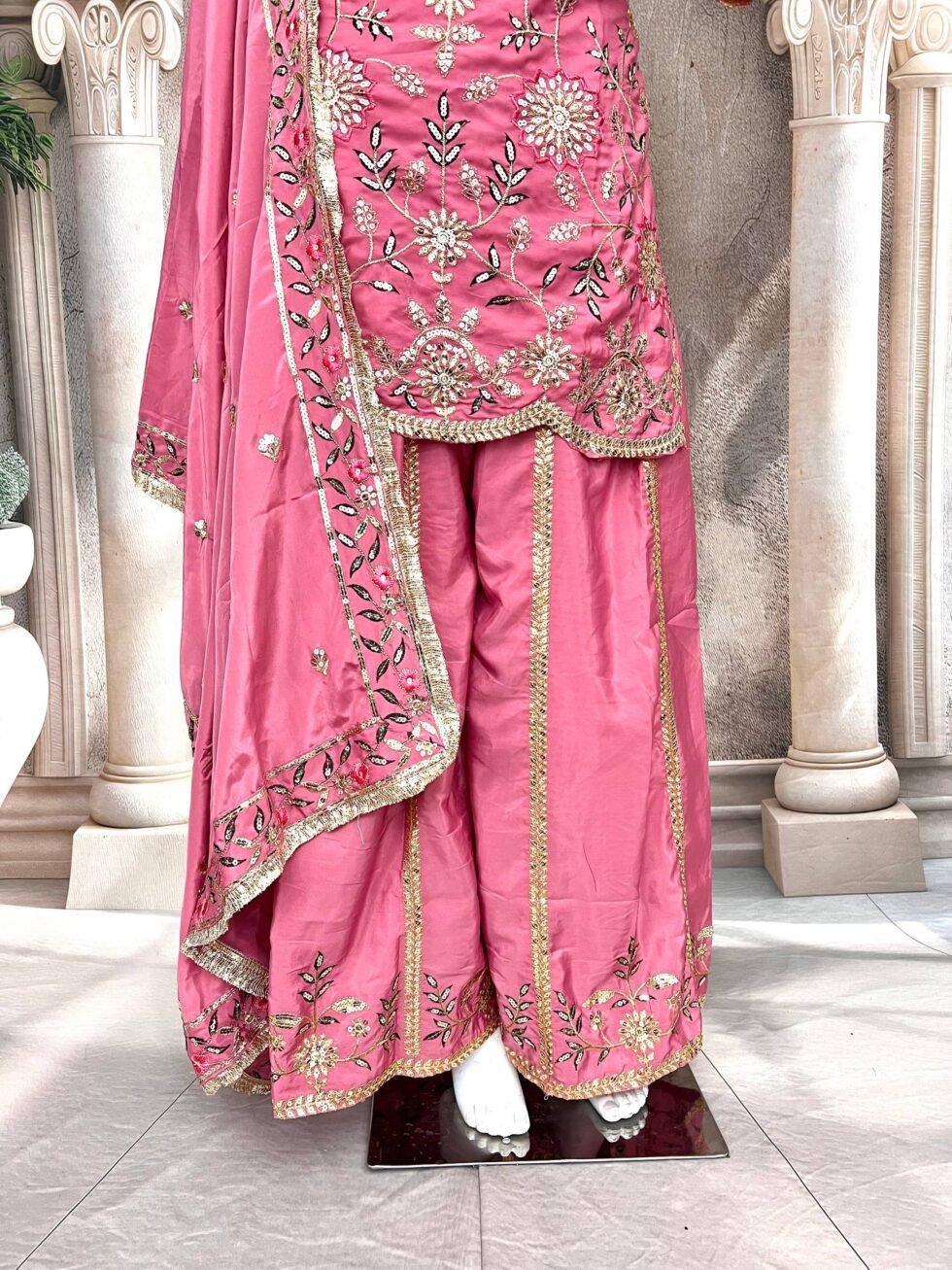 Sharara Fabric: Heavy Pure Natural Crepe Silk Fabric with Micro Silk inner (Fully stitched)