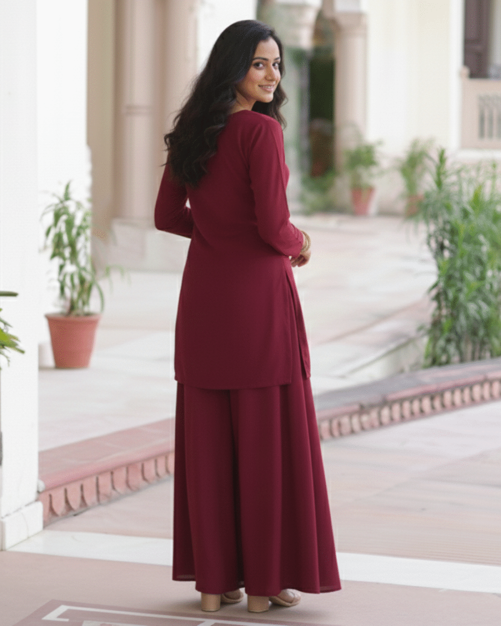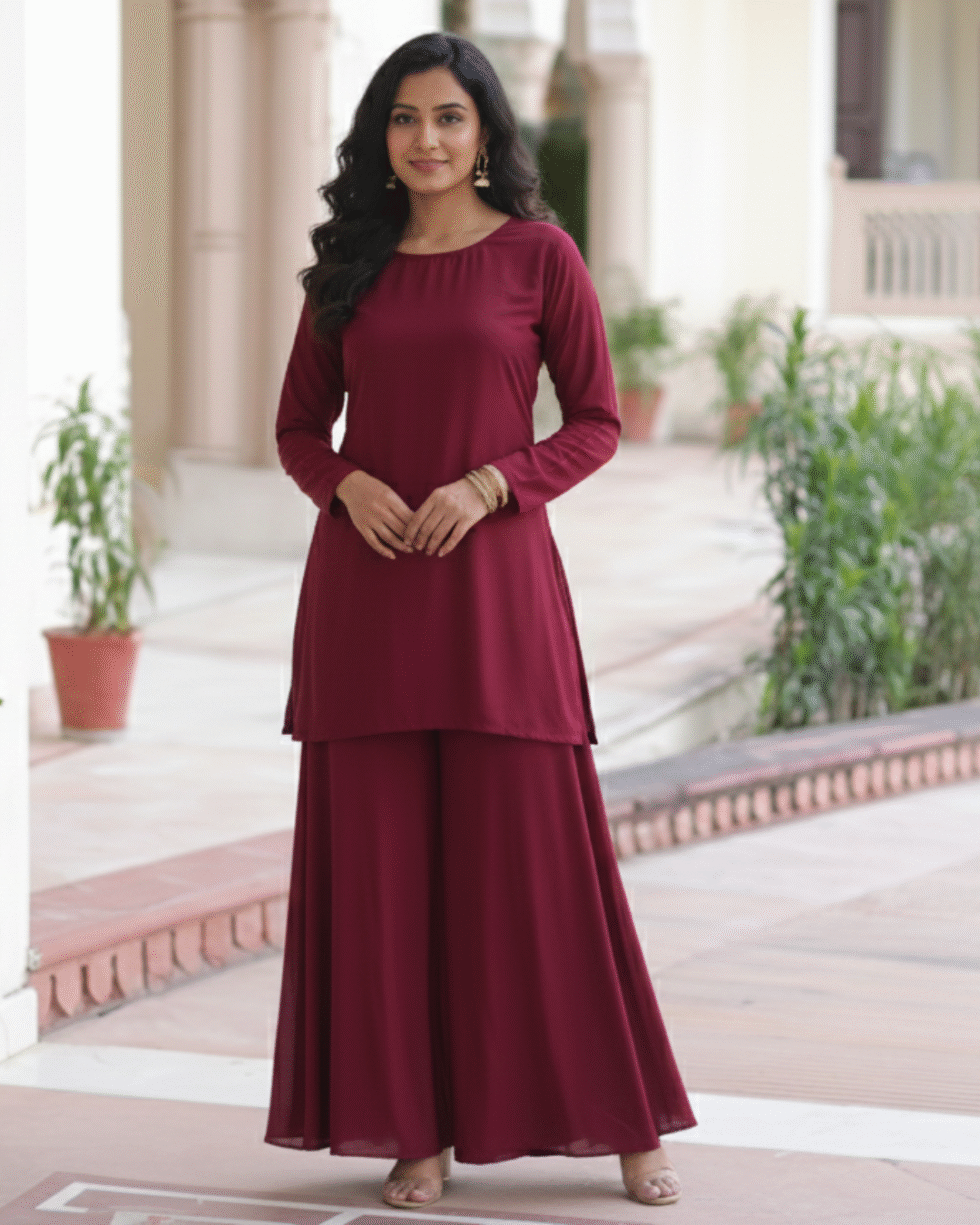 Be the first to review “Pink Velvet Short Kurta & Palazzo Set”