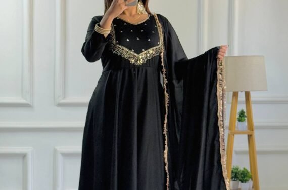 Work: Rich embroidery with detailed sleeve work