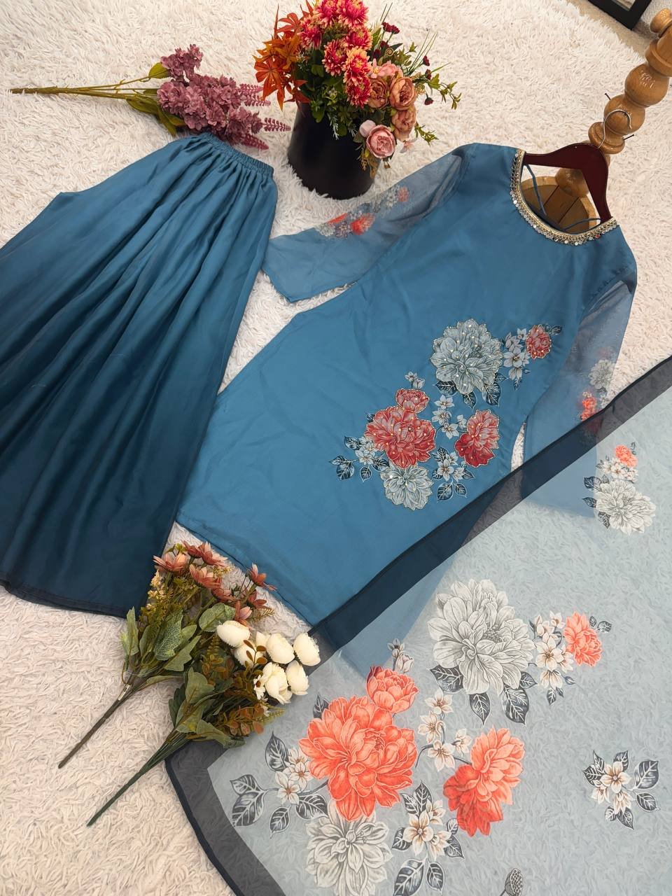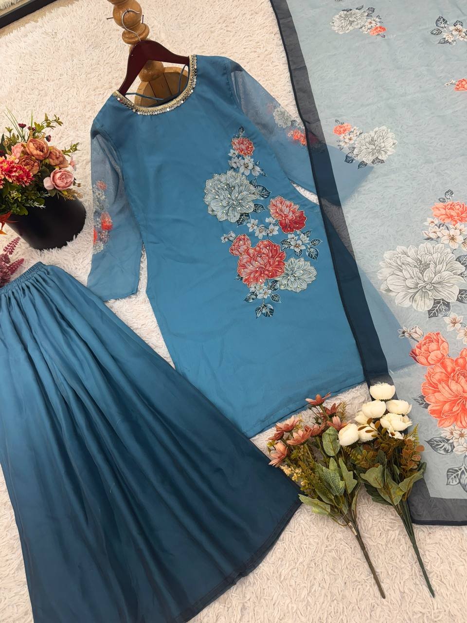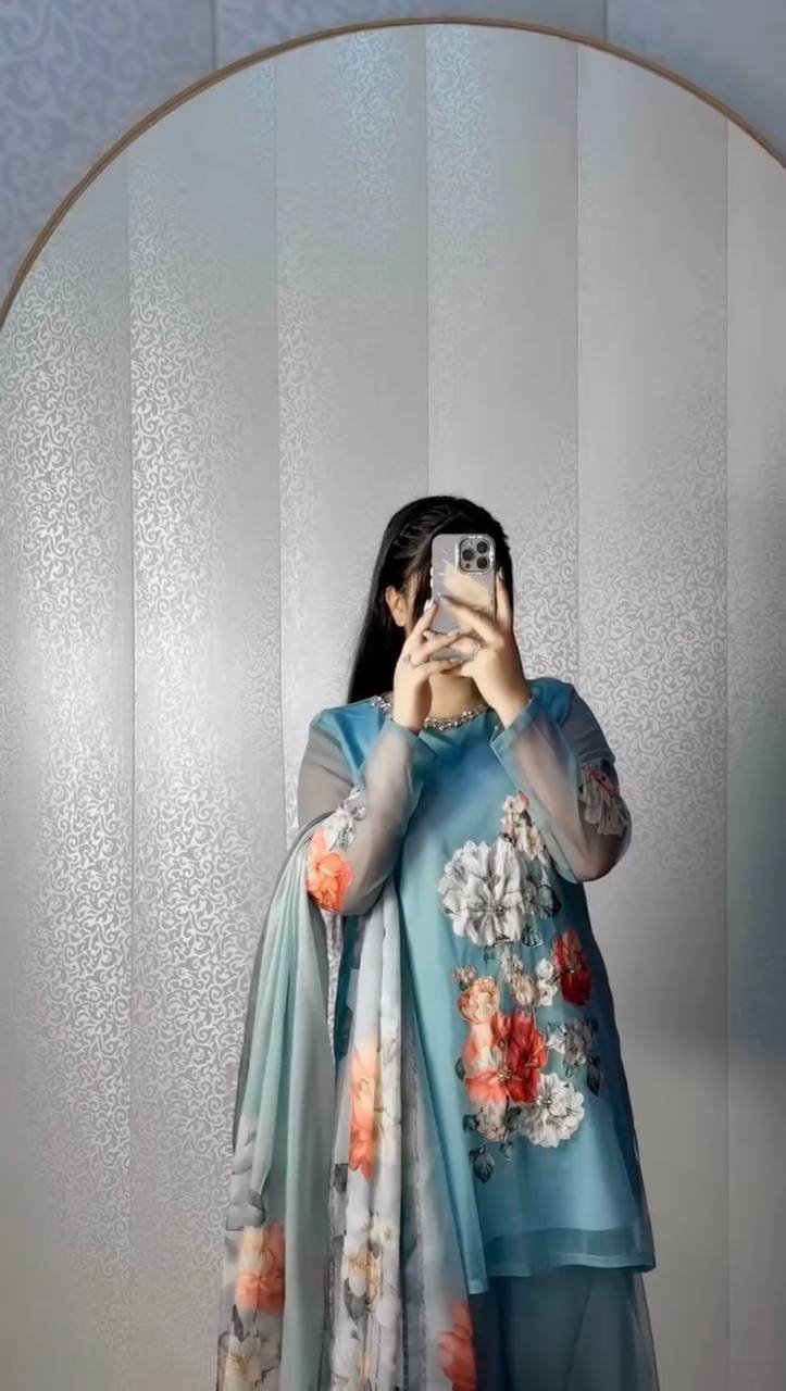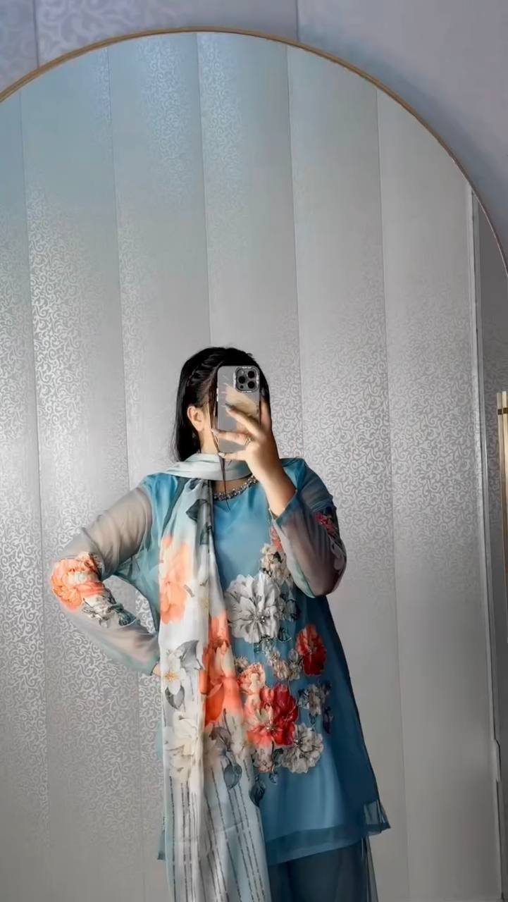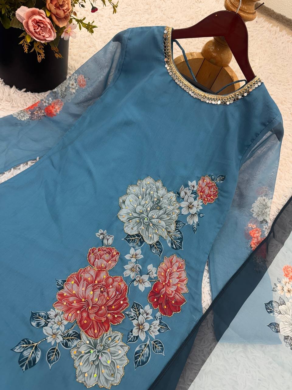 Fabric: Fox Georgette with Digital Print and Real Khatli Hand Work