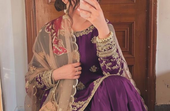 Be the first to review “Purple Chinon Silk Embroidered Sequins Suit with Full Flair Sharara & Dupatta”
