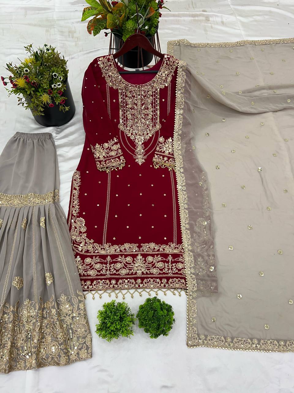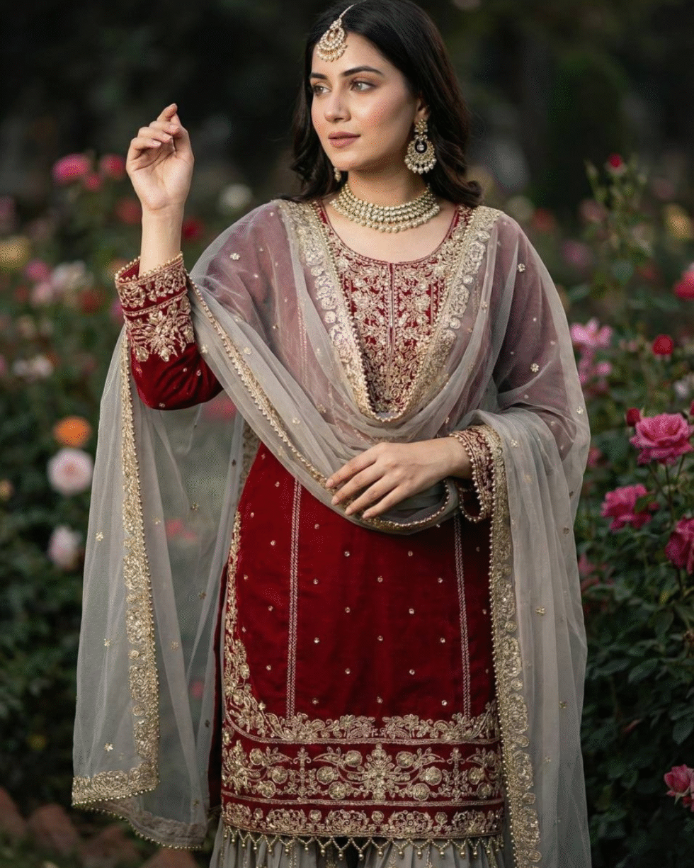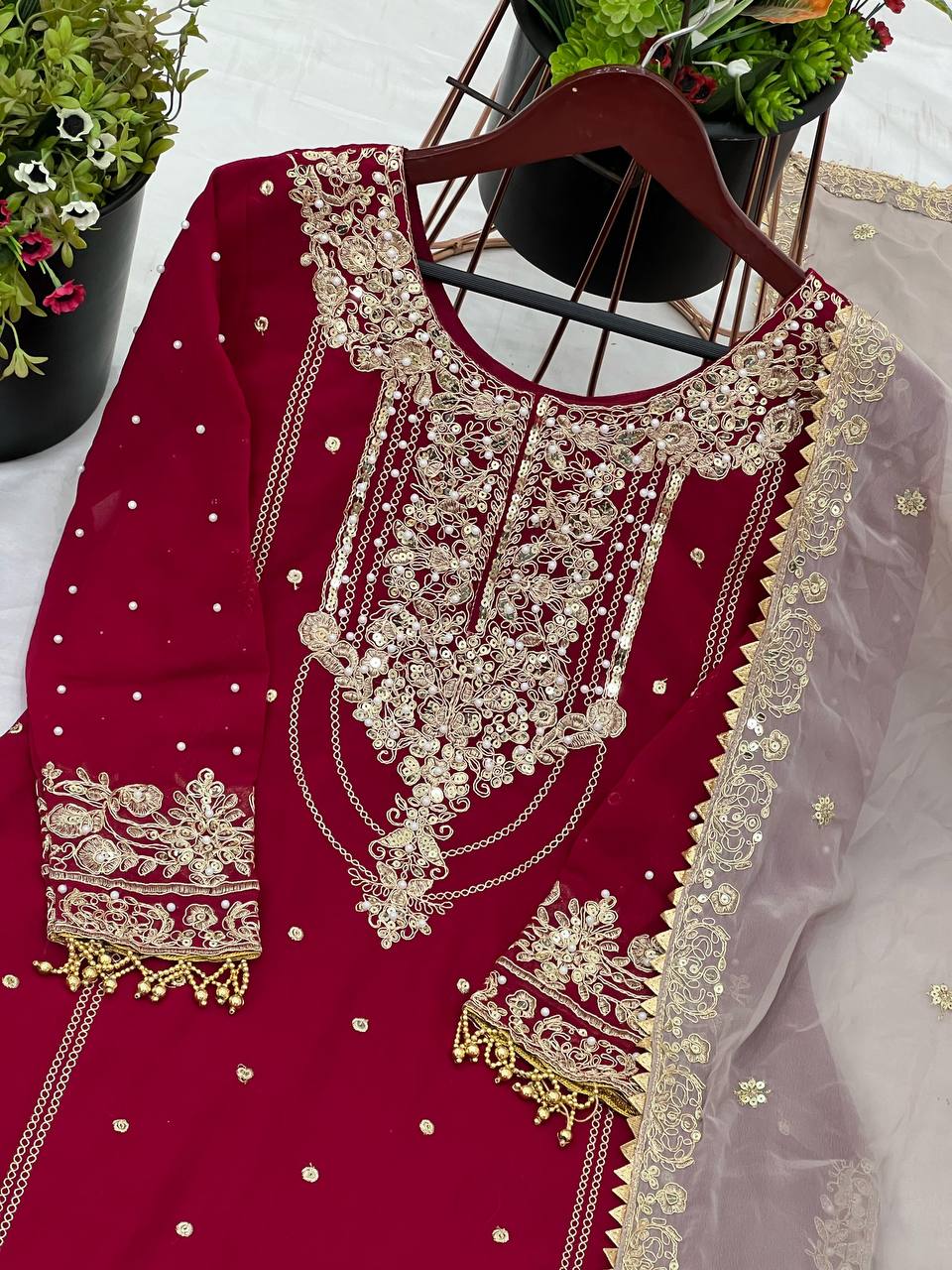 Work: Heavy Embroidery Coding Dori-Sequence Work with Rivet Moti Work