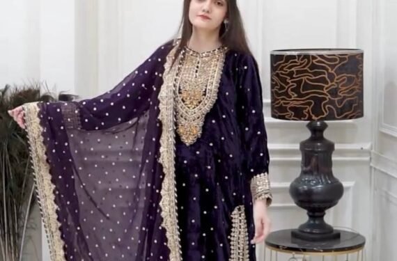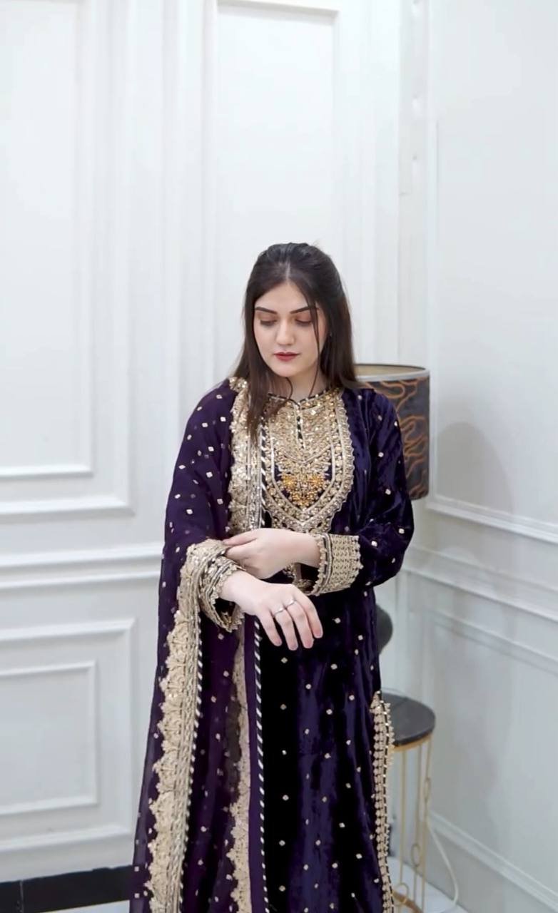Work: Heavy Embroidery Sequins Work with Neck Moti Work