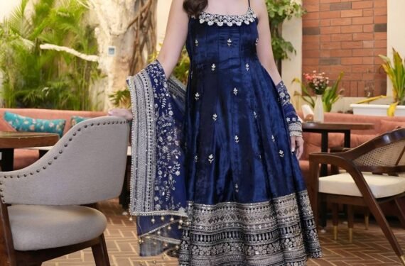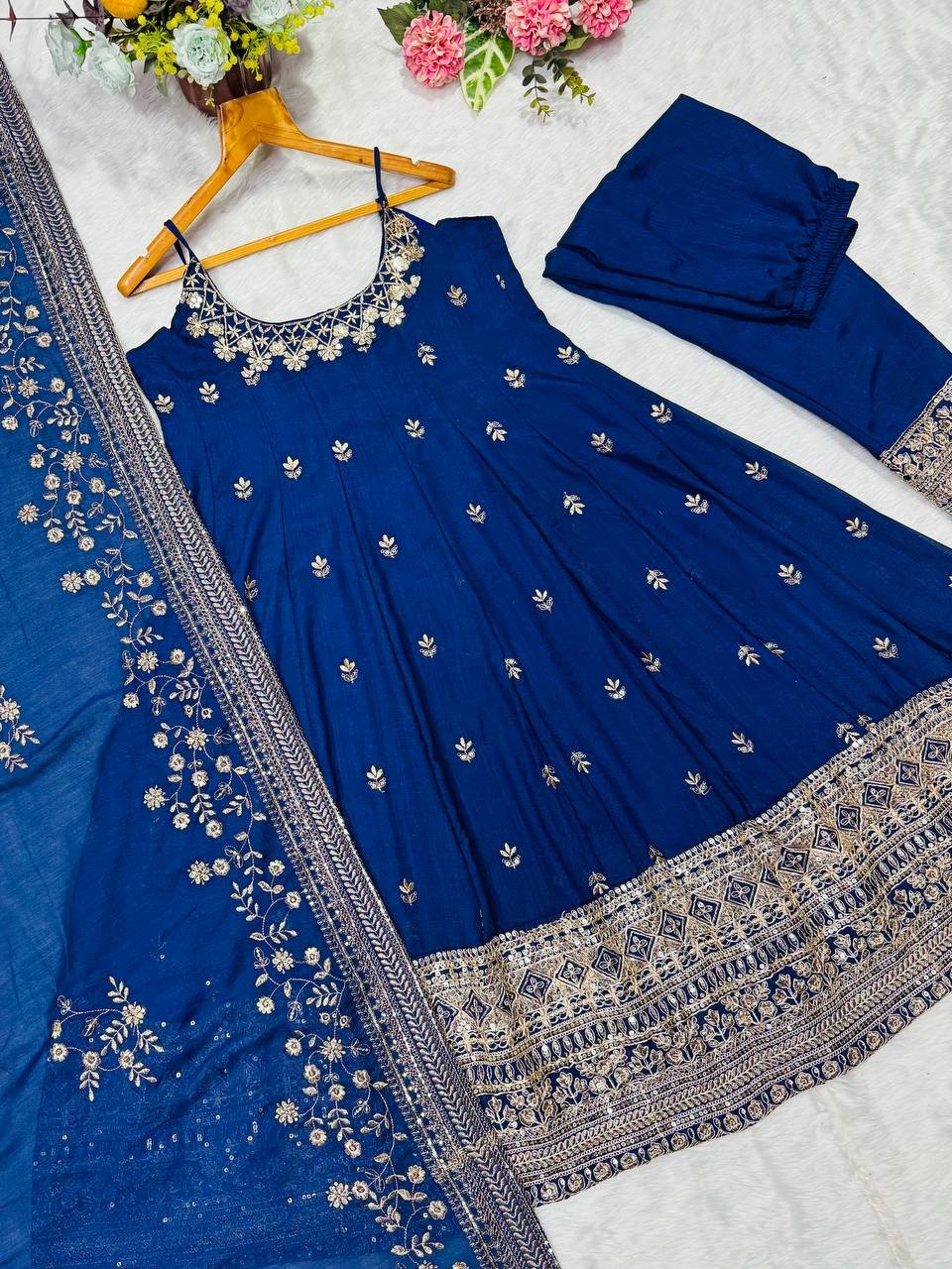 Be the first to review “Shayoni Blue Vichitra Silk Zari & Sequin Embroidered Gown with Pant and Dupatta”