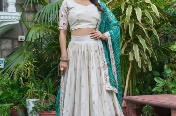Be the first to review “Traditional Silk Cording Sequins Embroidery Lehenga Choli with Green Bandhani Dupatta”