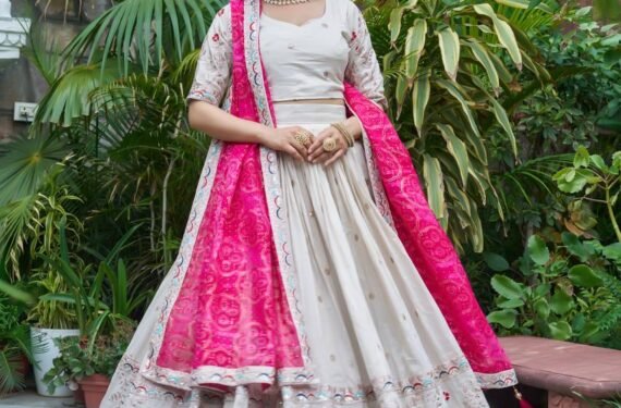 Be the first to review “Traditional Silk Cording Sequins Embroidery Lehenga Choli with Pink Bandhani Dupatta”