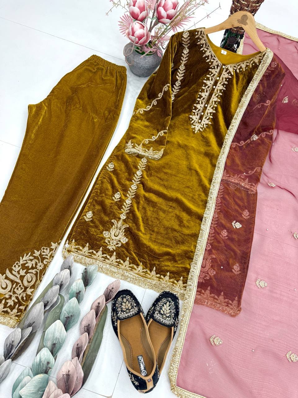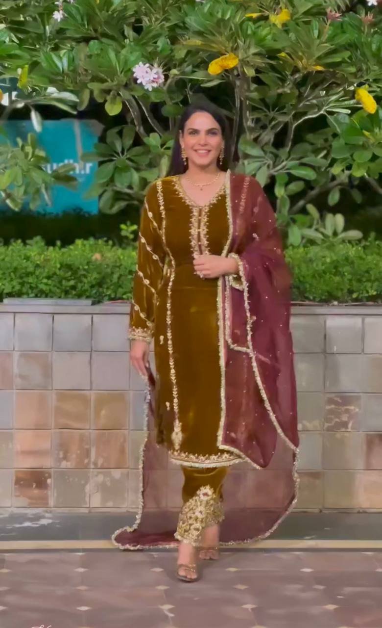 Work: Heavy Chine-Stitched Work with Pearl Moti Hand Work and Fancy Lace Border