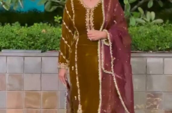Work: Chine-Stitched Work with Pearl Moti Hand Work and Fancy Lace Border