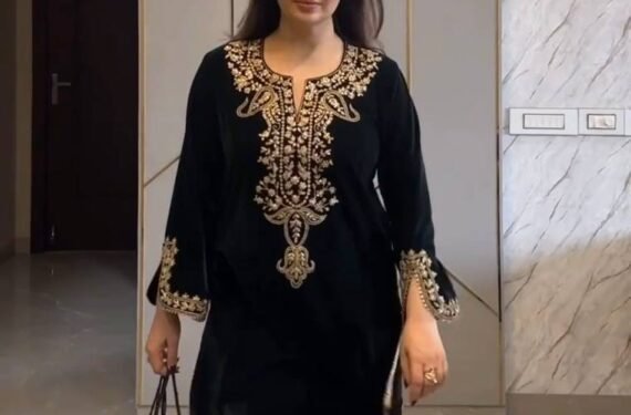 Be the first to review “Zoya Black Viscose Velvet Heavy Embroidery Kurta & Bottom”